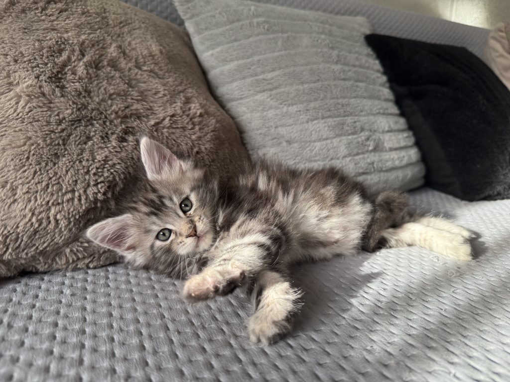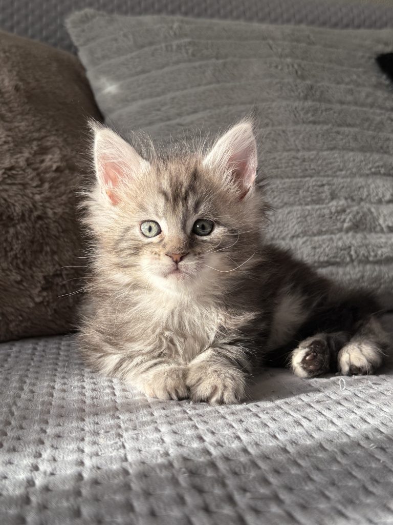 “Travis” is a Black Silver Tabby, he is very large in size one of the biggest kittens we have breed so far, he loves his food and is a very confident and friendly kitten